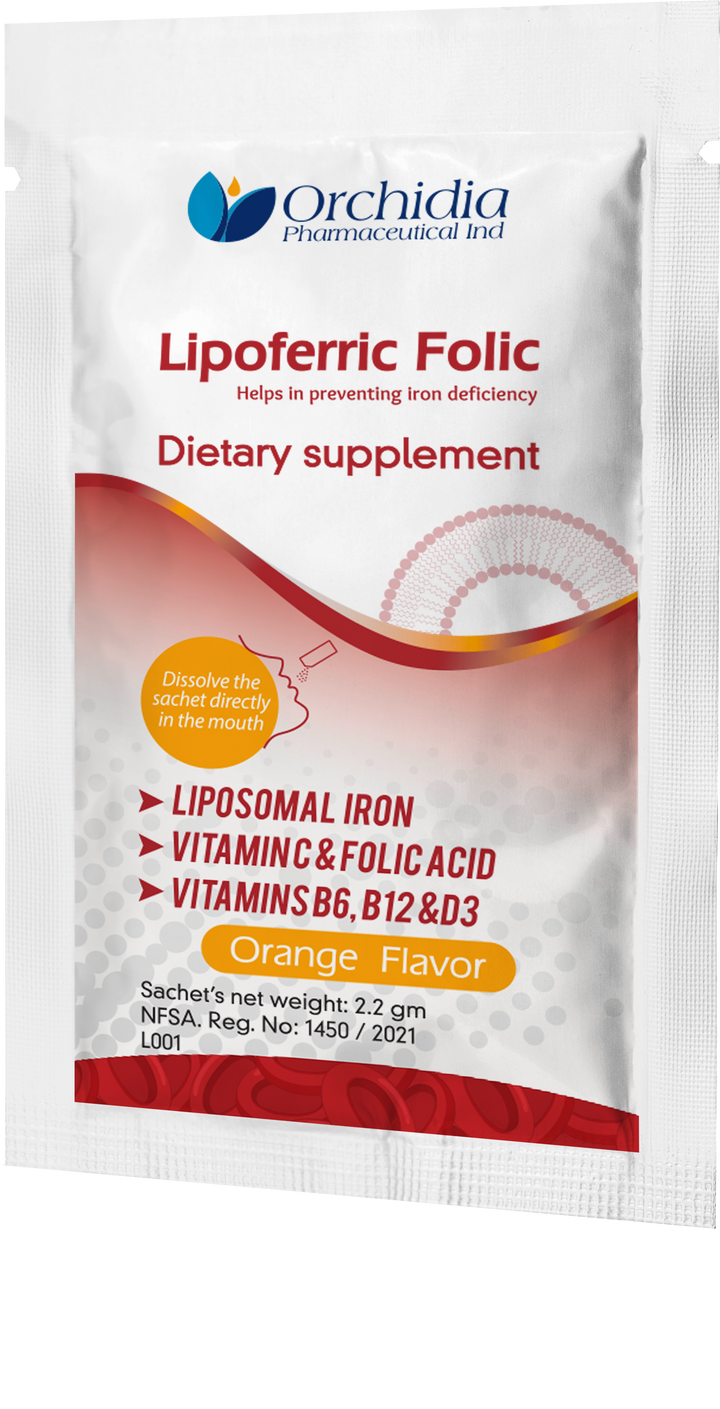 Lipoferric Folic is an iron supplement by Orchidia Pharmaceutical produced with innovative technology “LIPOSOMAL TECHNOLOGY “ that allows better absorption of Iron by the cells of our body, Which ensures: