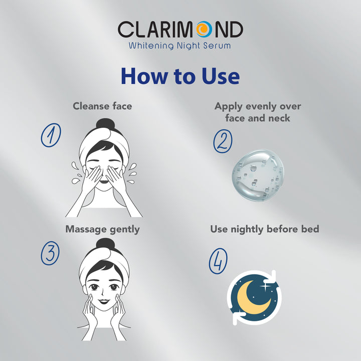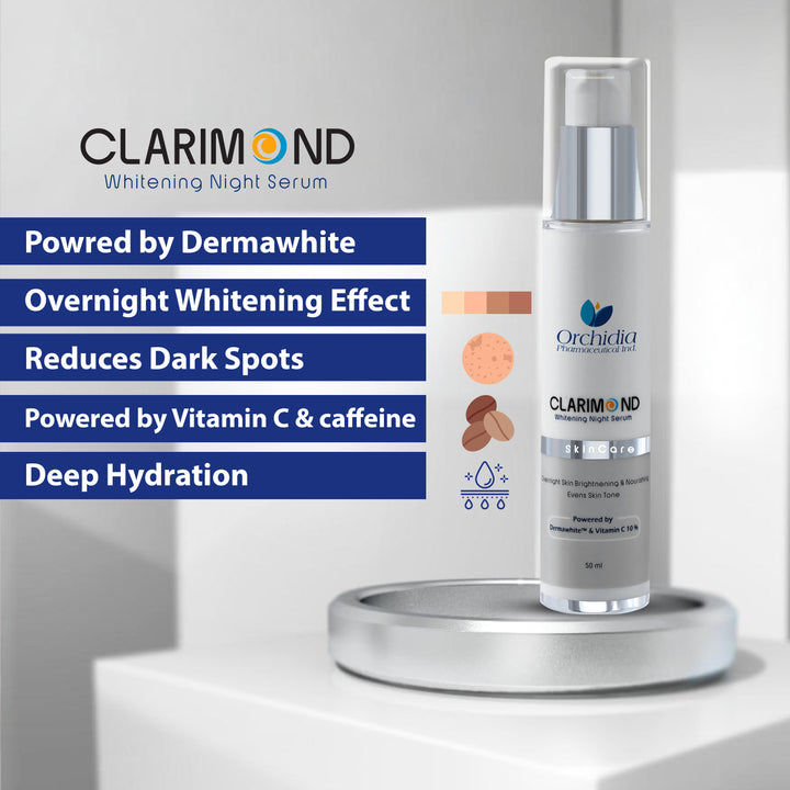 Clarimond whitening night serum by Orchidia is an innovative formula with an intensive blend of natural brightening ingredients that